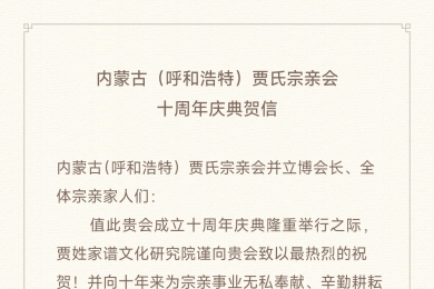 研究院动态专注贾姓家谱与家族文化。这里将及时推送家谱新发现、家族文化研究成果、宗亲寻根进展等资讯,家族文化研究的新观点、各地贾氏家族活动等与贾氏家族文化息息相关的内容。让您时刻掌握贾氏家族文化传承发展的最新动态。 |